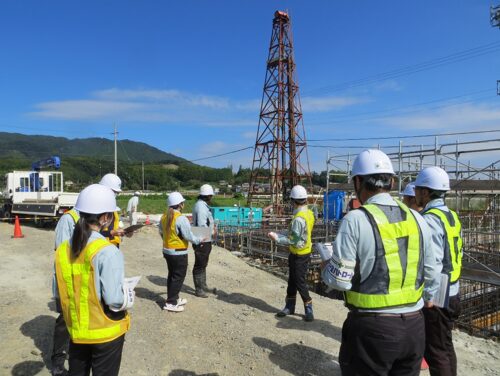 今回のパトロールは、桑名市における水道水源確保を目的とした新規井戸掘削工事の現場で、新設予定の水道施設敷地内の一角で施工が進められています。工事内容は、ロータリー工法による井戸掘削(φ350mm×120m×1井)です。