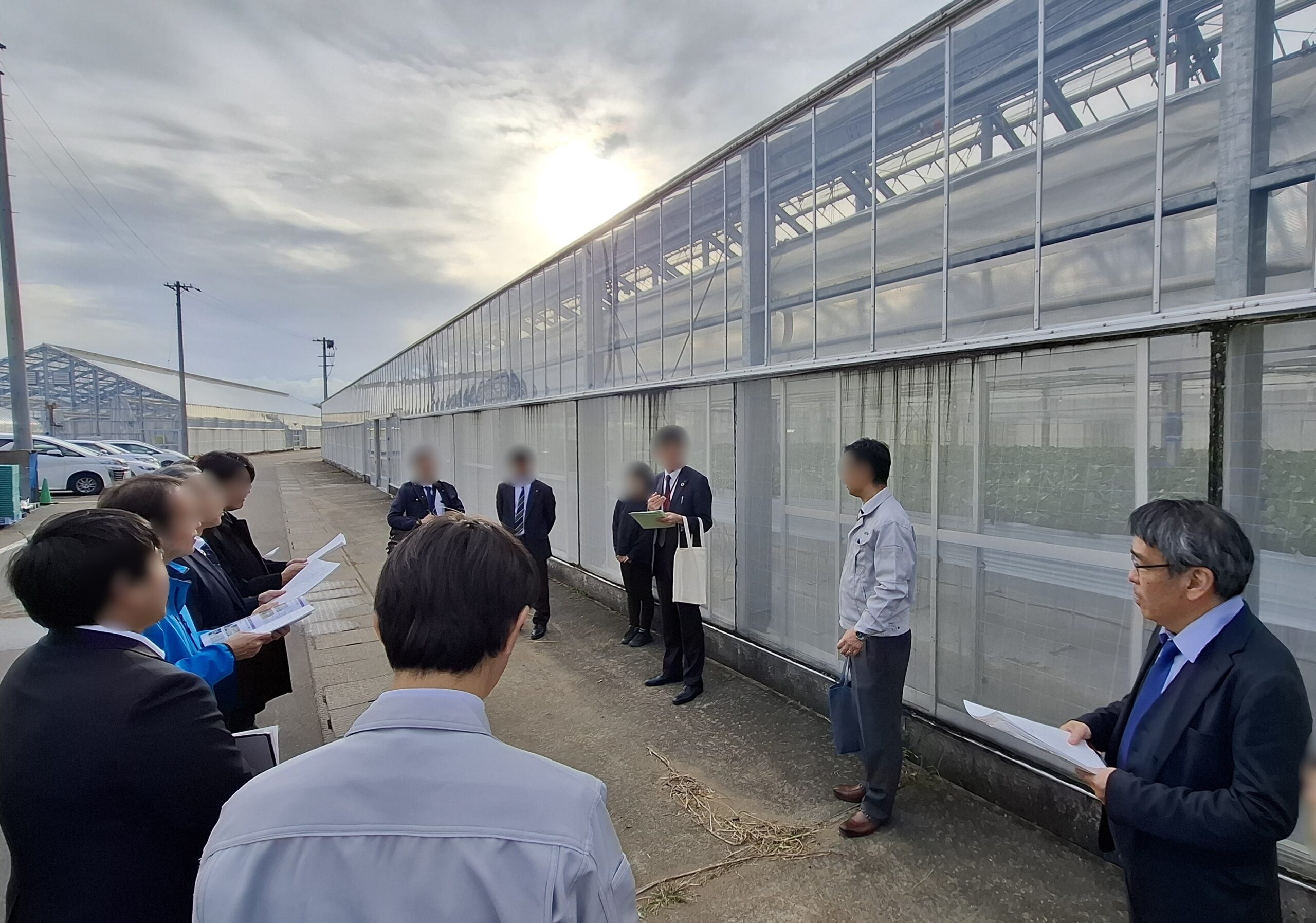 施設見学の1箇所目はぴあパーク とうりんぼう内のピーチビレッジ園芸管理センターでした。施設関係者の方々からイチゴ、トマトの育成について普段接することない貴重なお話をお聞きしました。