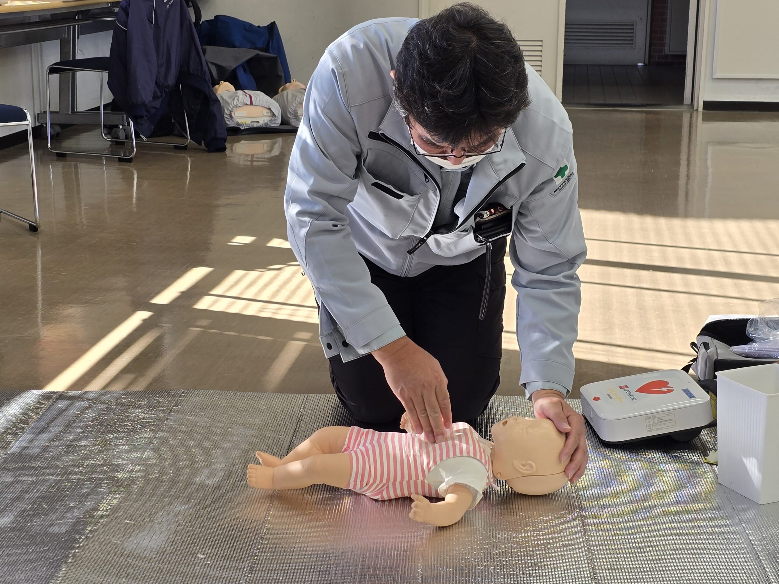 乳児(1歳未満)を対象とした胸骨圧迫の基礎実技です。