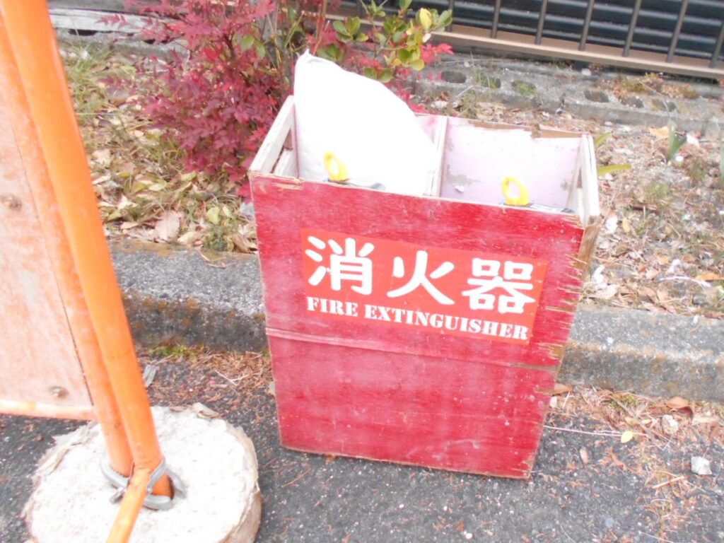 消火器の防食対策、視認性向上を目的として格納箱を設置しています。
